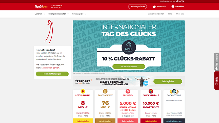 Das Beispiel des Eurojackpots zeigt, dass man eine gut durchdachte Webseite vorfindet, bei der der Webseitenbesucher quasi an der Hand durch die Webseite geführt wird.